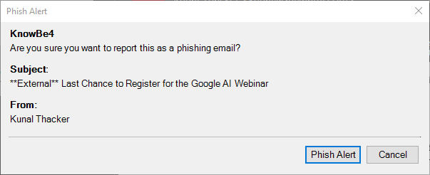 If the message was a part of a phishing campaign you will receive the following message.