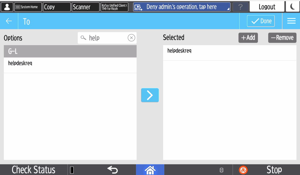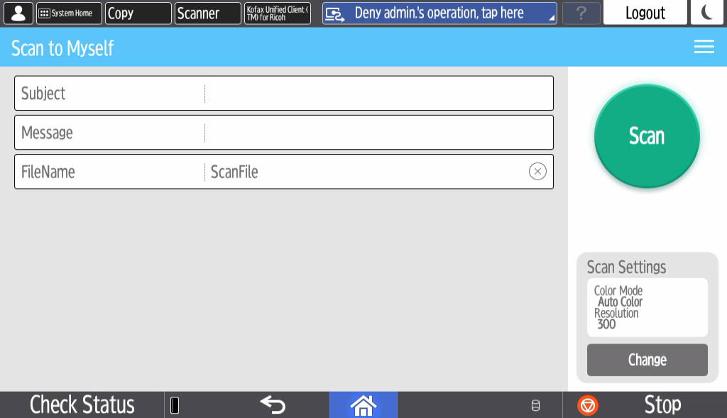After selecting Scan to Myself, load the document and select the Scan button to begin scanning